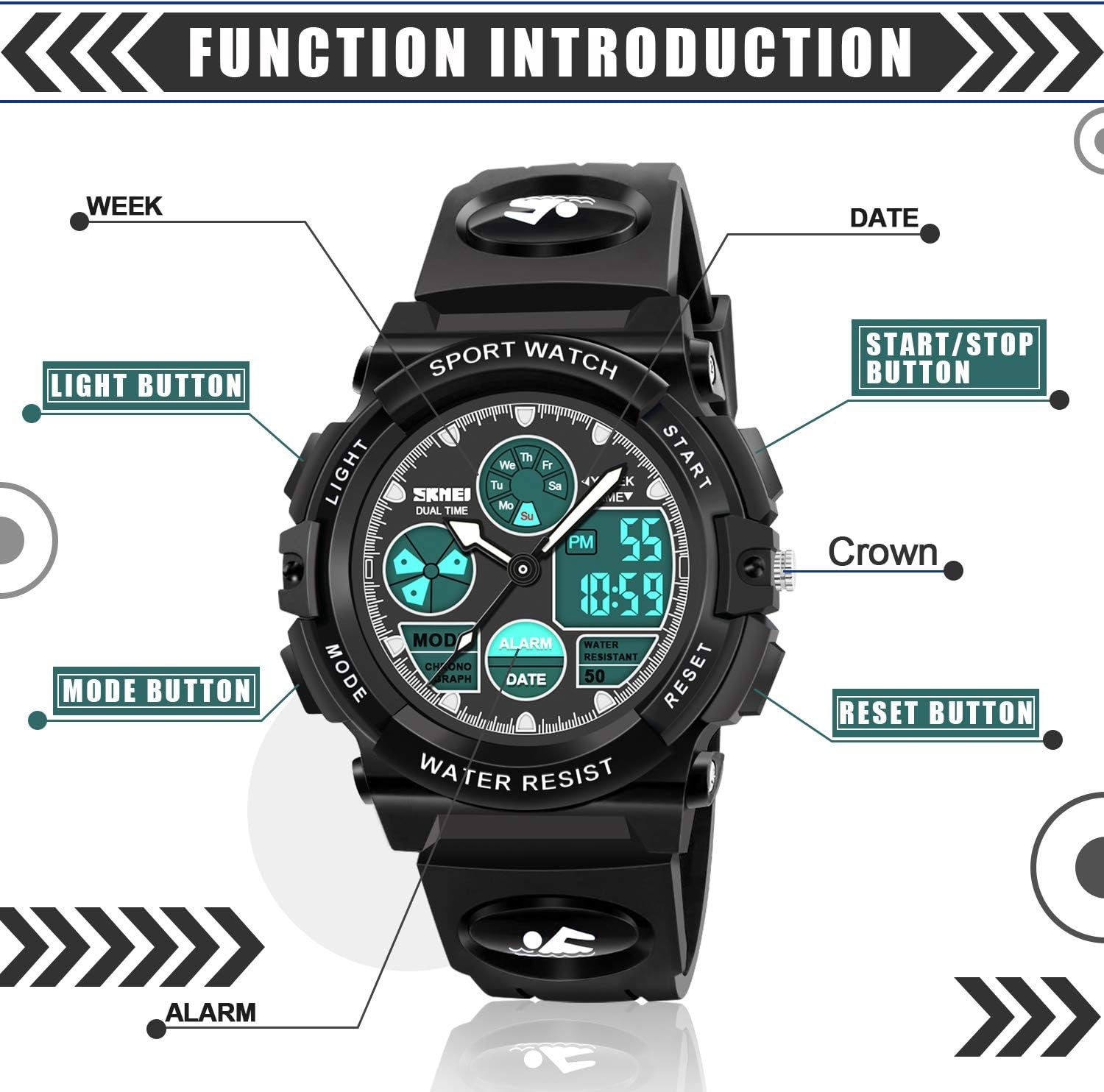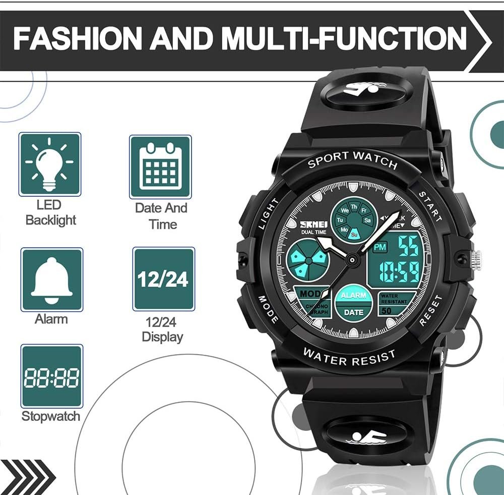 - ❤【MULTIFUNCTIONAL】Our Kids watch has various functions: Dual Time Display, Alarm Clock, Stop Watch, LED Luminous, Calendar Date Window, 50M Waterproof, Shock Resistant. Any child will like it.