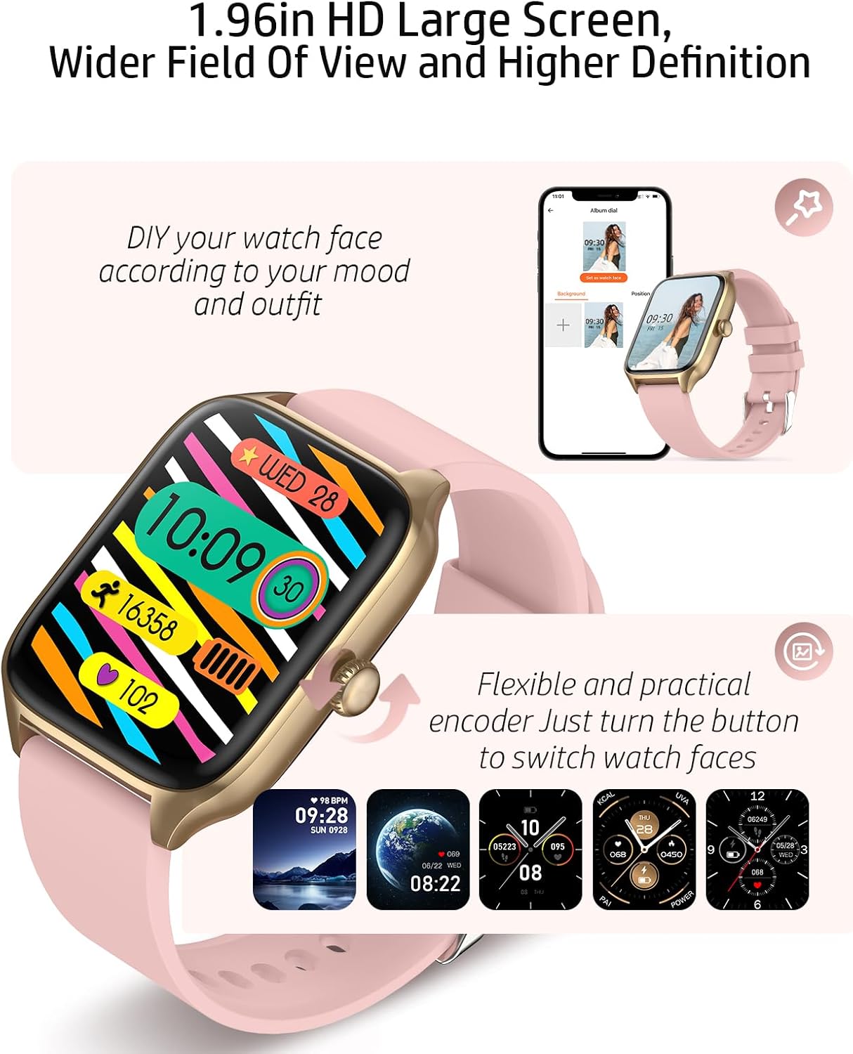 Smart Watches for Women, Activity Fitness Tracker 1.96″ HD Full Touch Screen with Heart Rate