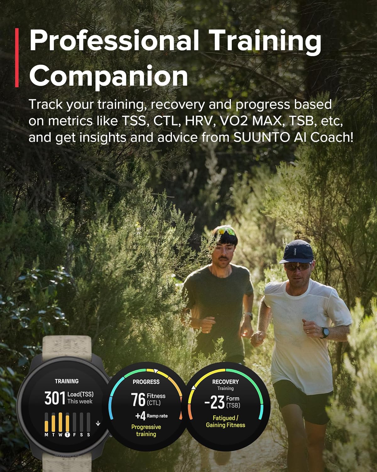 • SPORTS AND TRAINING COMPANION – With over 95 preset sports modes from cycling, running to paragliding, bouldering, the SUUNTO Race S watch can record all your sports. It also offers professional values ​​such as TSS, CTL, HRV, VO2 MAX, TSB, etc. to help sports enthusiasts deeply analyze workouts, and achieve peak performance based on the insights from AI Coach in the Suunto APP. Another SuuntoPlus app can even connect with 300+ partner services to enhance your training and outdoor experience!